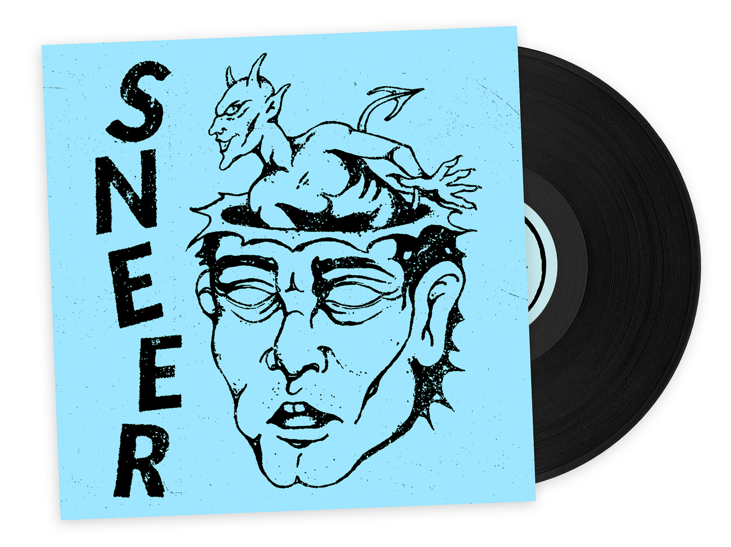 Stomping a boot heel straight through your busted radar, it’s Plymouth’s Sneer with their debut 12” vinyl. It’s an intense, chorus soaked slam ride, comparable to USHC bands Creem, Exit Order or Glue, but with added snarling, Wattie esque vocals that hammer home the filthy UK Punk influence this record carries. There are electronic interludes peppered throughout the LP that will confuse the hell out of the listener, while simultaneously succeeding in making the blasting tracks that surround them hit even harder. Sneer’s debut is a one sided attack on the ignorant, narcissistic, war fuelled world we are currently enduring… and it sure will make for great company during the apocalypse.